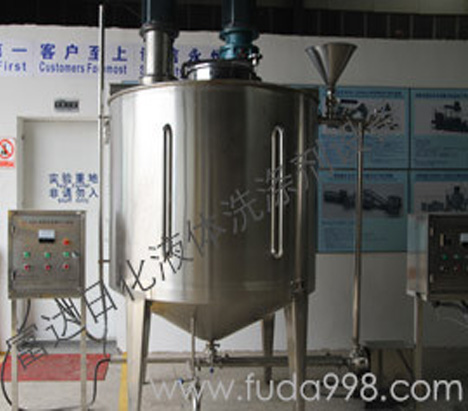 2)洗潔精設(shè)備結(jié)構(gòu):包含攪拌裝置,分散剪切裝置,循環(huán)乳化裝置,減泡裝置,小樣回流系統(tǒng),夾層水域恒溫裝置,產(chǎn)品溫顯裝置,控制箱等;